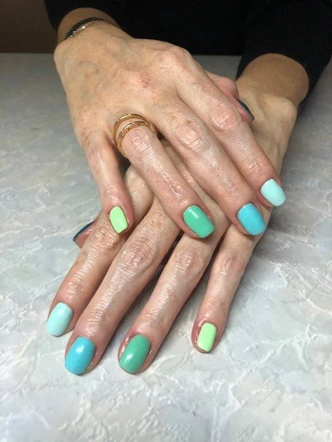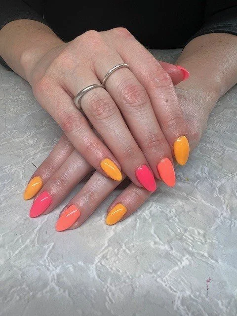 Nail art - French Mani with each finger painted a different bright colour